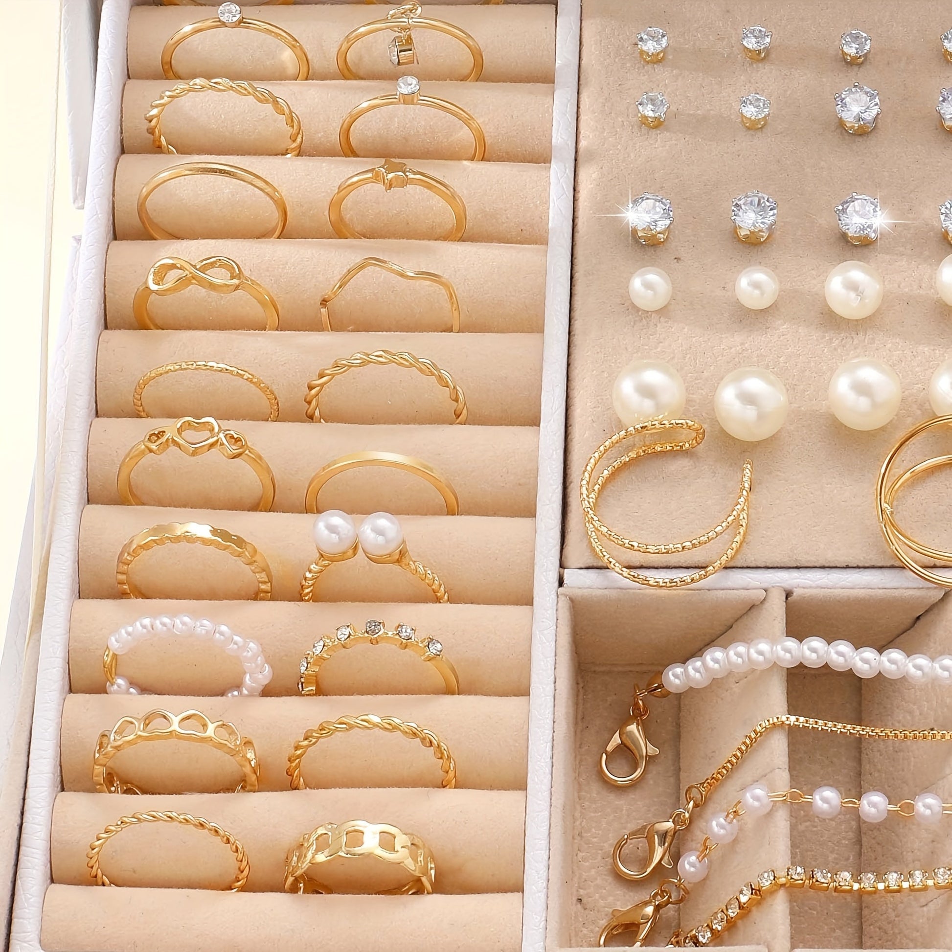 Jewelry Set with 83 Faux Pearl Rings Earrings Necklaces Bracelets for Women