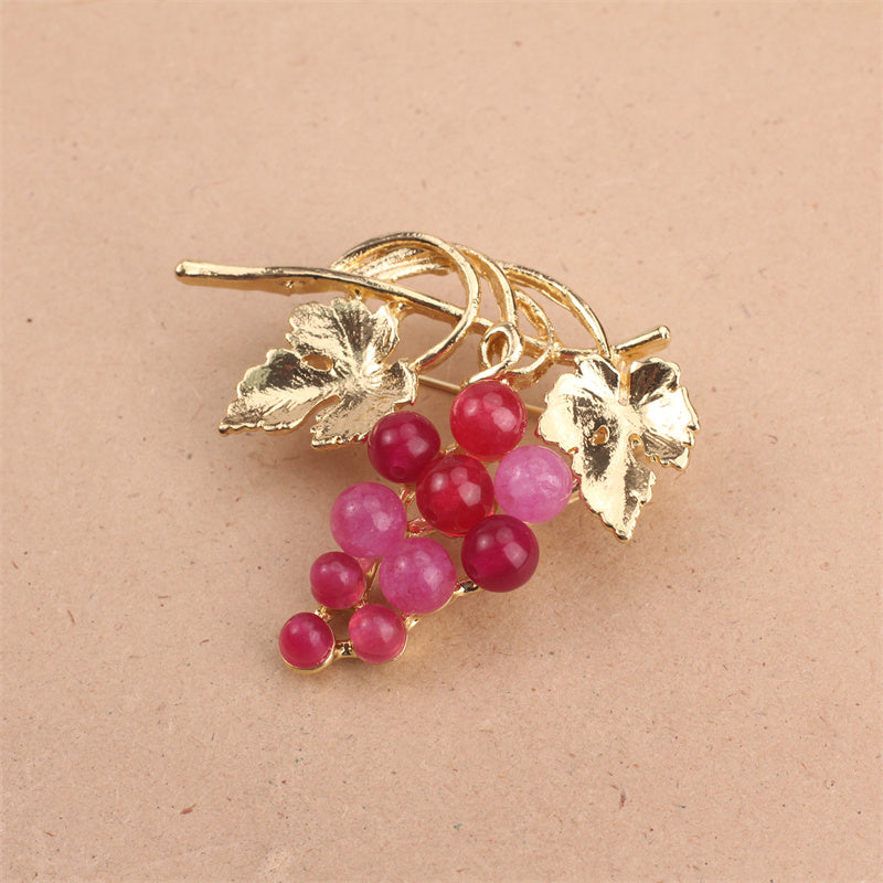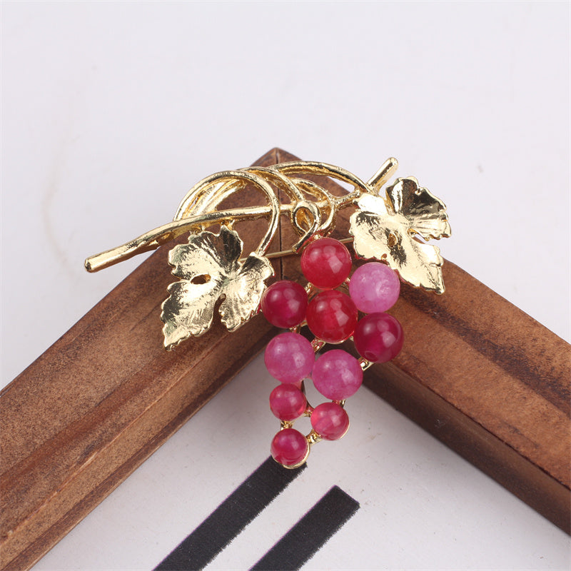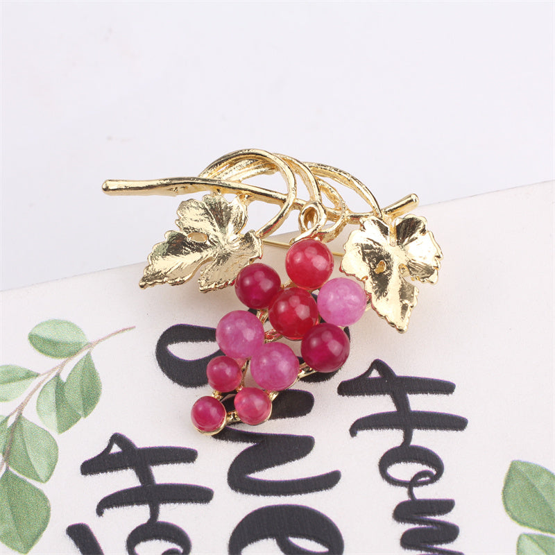 Minimalist Women's Resin Brooch Pin with Grape and Leaf Design for Coats and Jackets