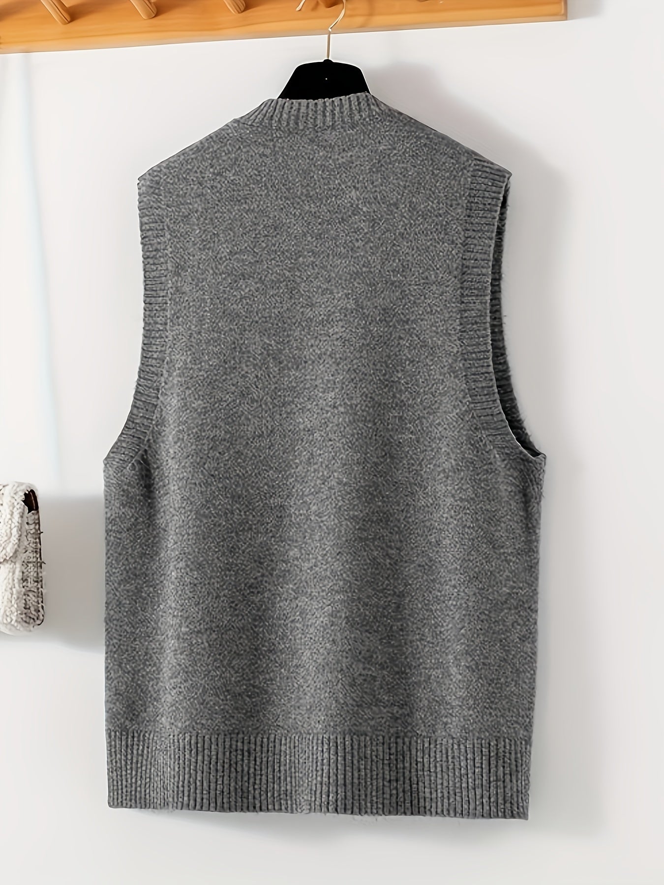 Sleeveless Knit Vest with Side Slits Crew Neck Viscose Polyester Blend Long Backless Elegant