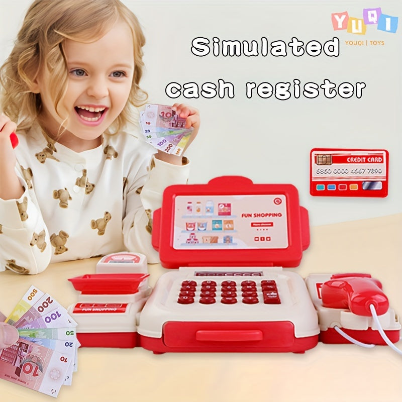 Kids' Toy Cash Register for Ages 3-6 with Scanner and Educational Role Play Red and Blue