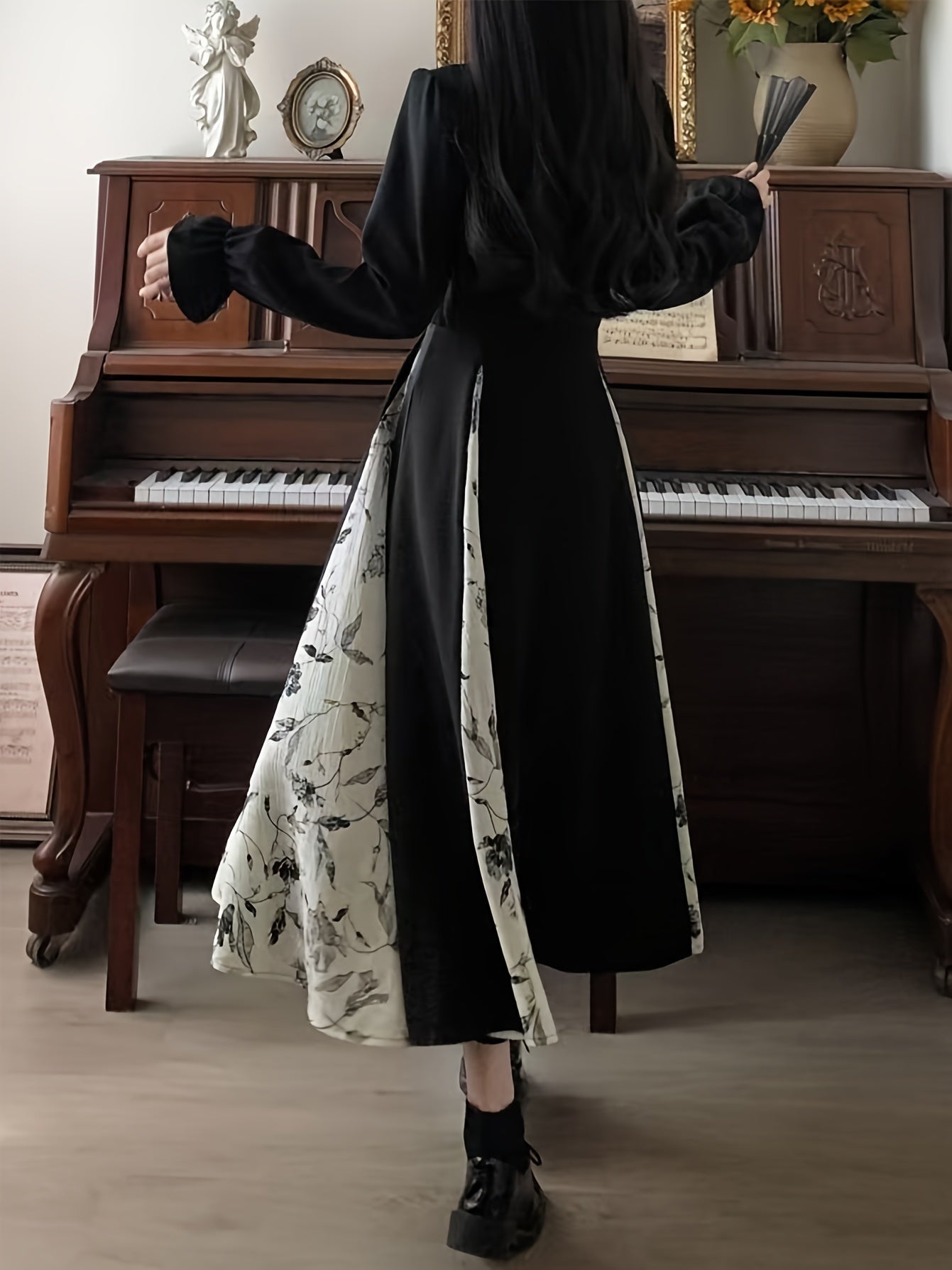 Women's Long Cheongsam Dress Lantern Sleeve Polyester Flared Party Holiday