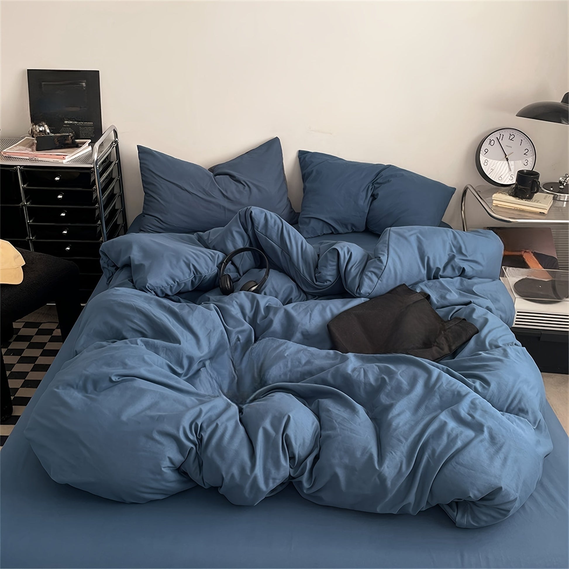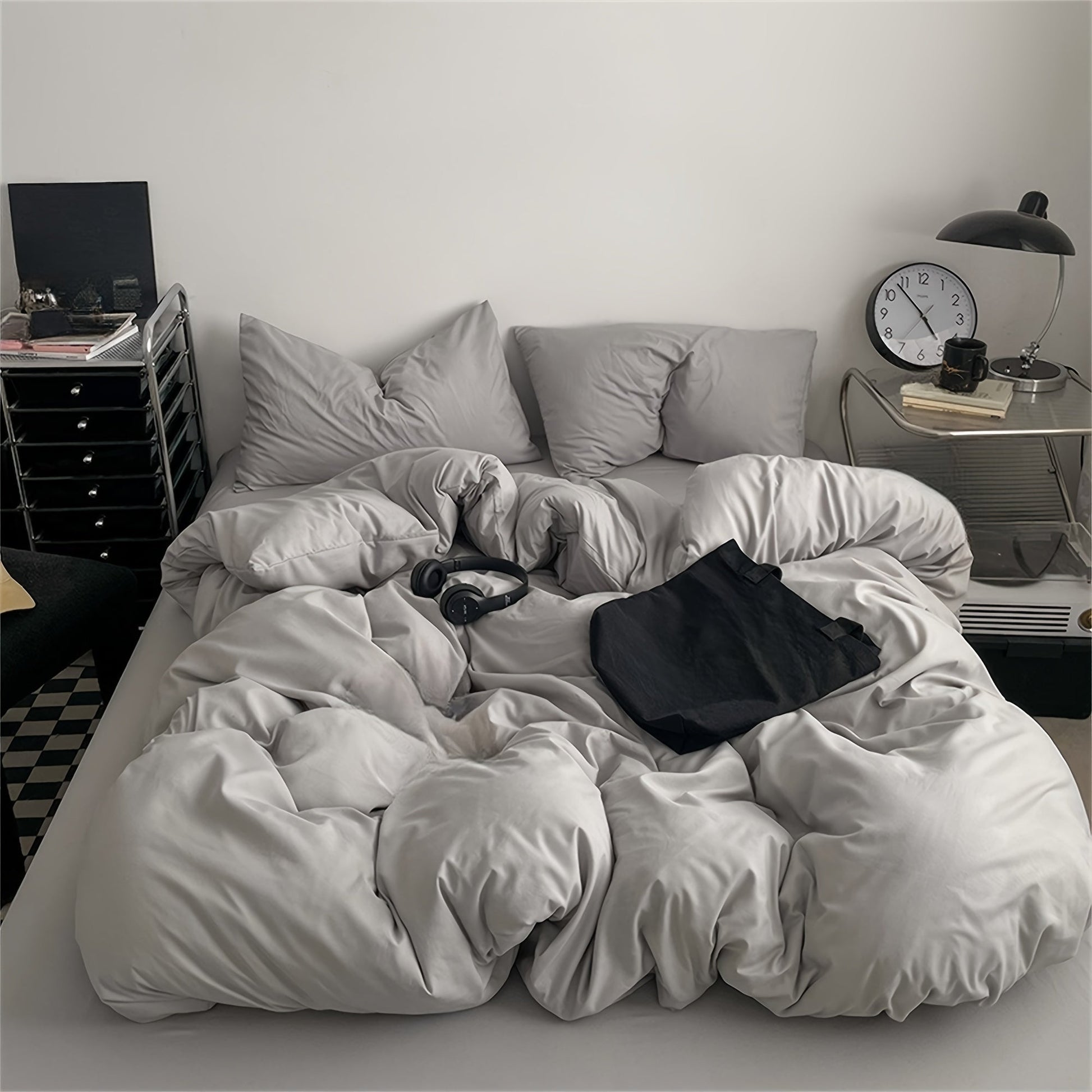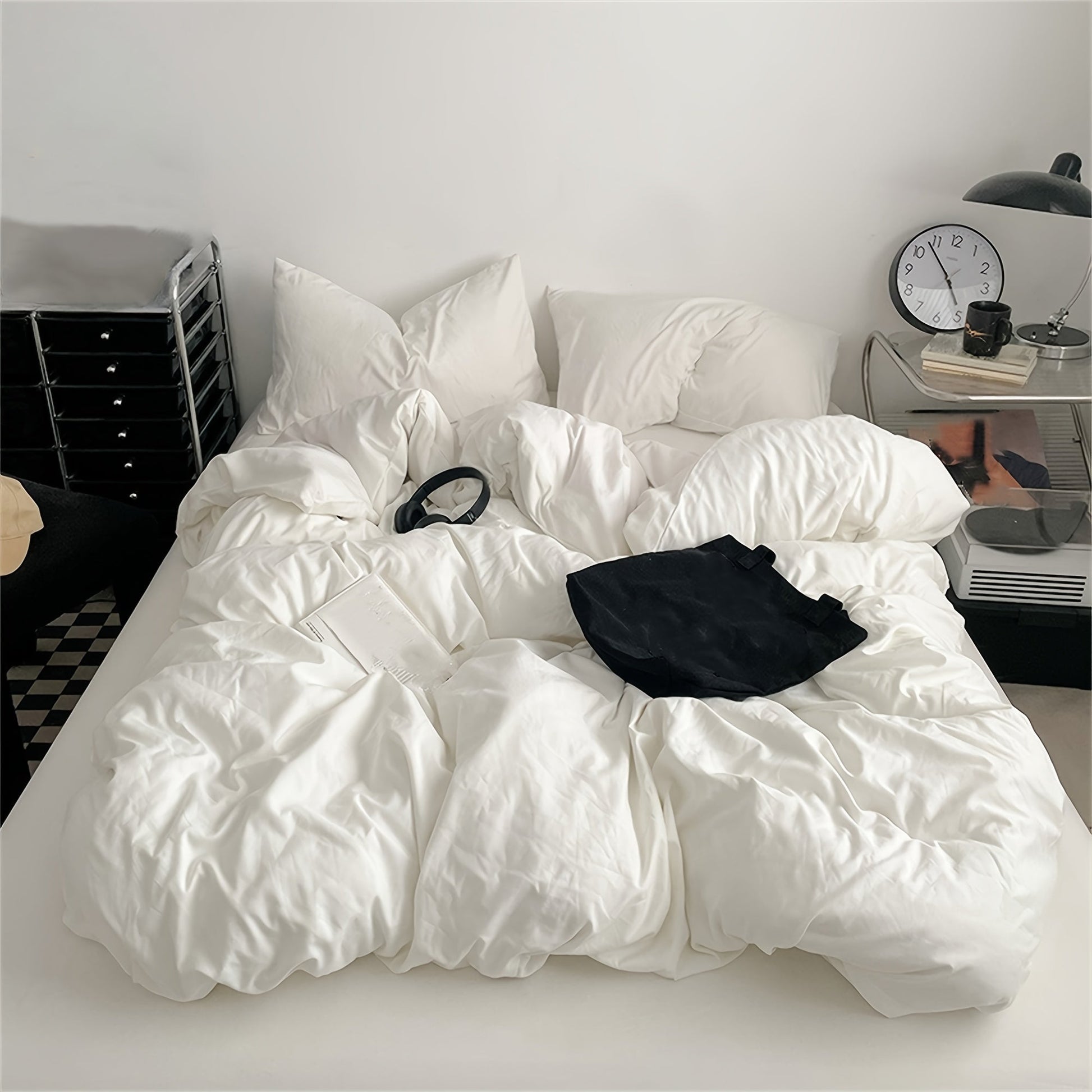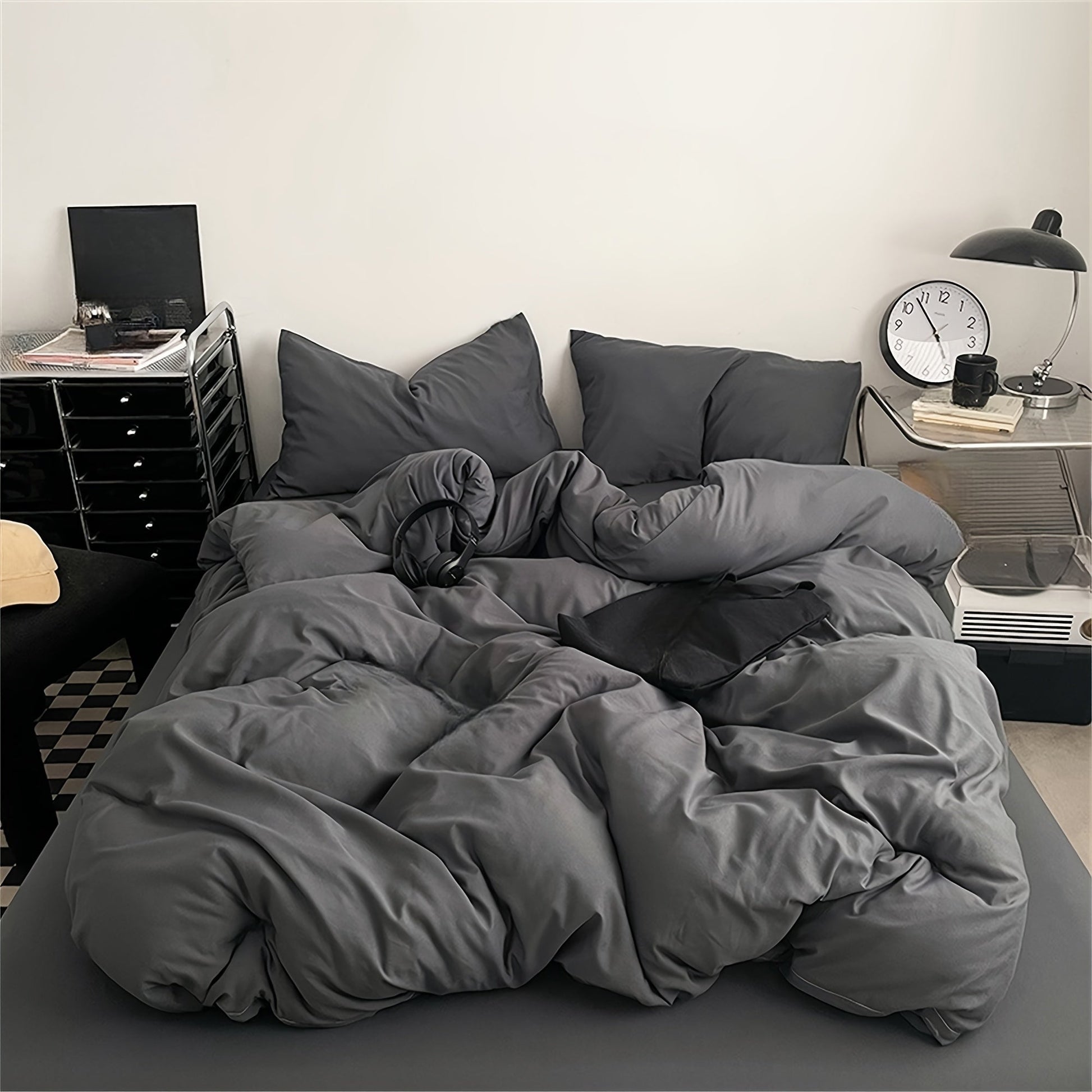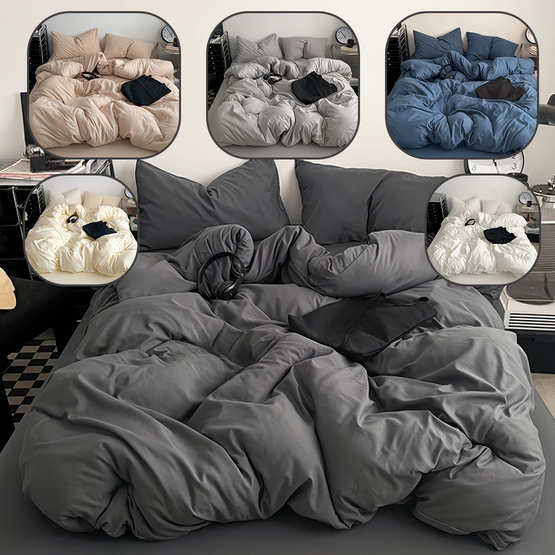 Set of 3 Polyester Duvet Cover and Pillowcase Set Solid Color Shrink Resistant Machine Washable