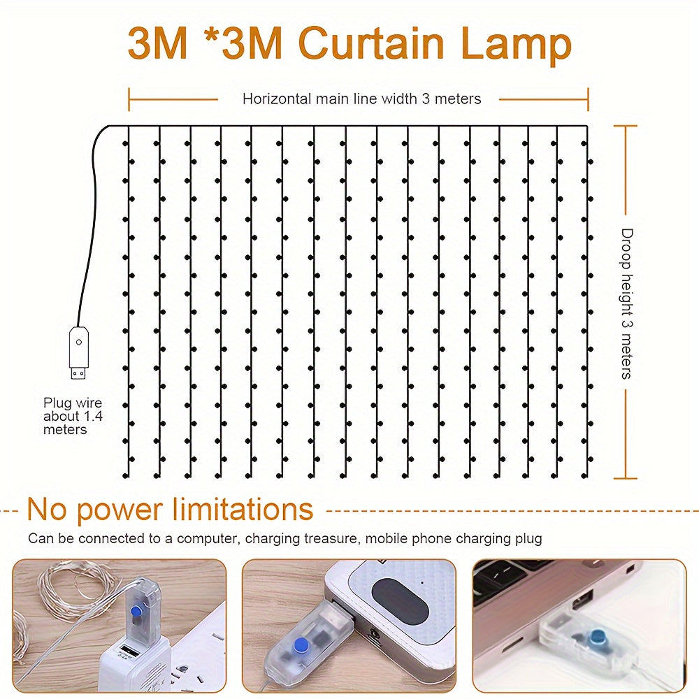 Christmas Lights Curtain with Merry Christmas and New Year Ornaments for Holiday Decor