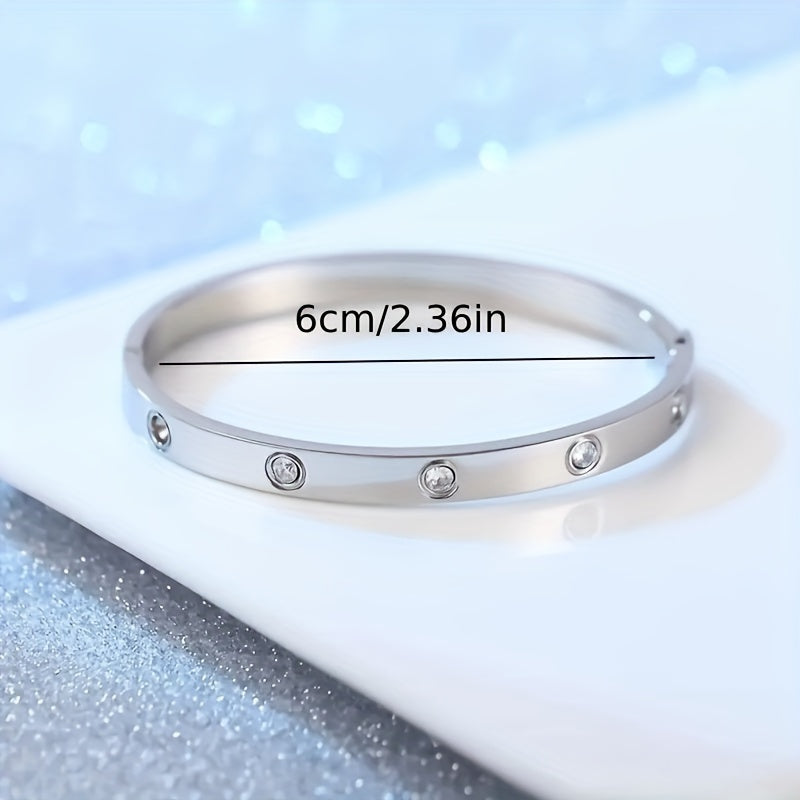 Titanium Steel Bracelet with Synthetic Zircon and 18K Gold Plating for Daily and Party Wear