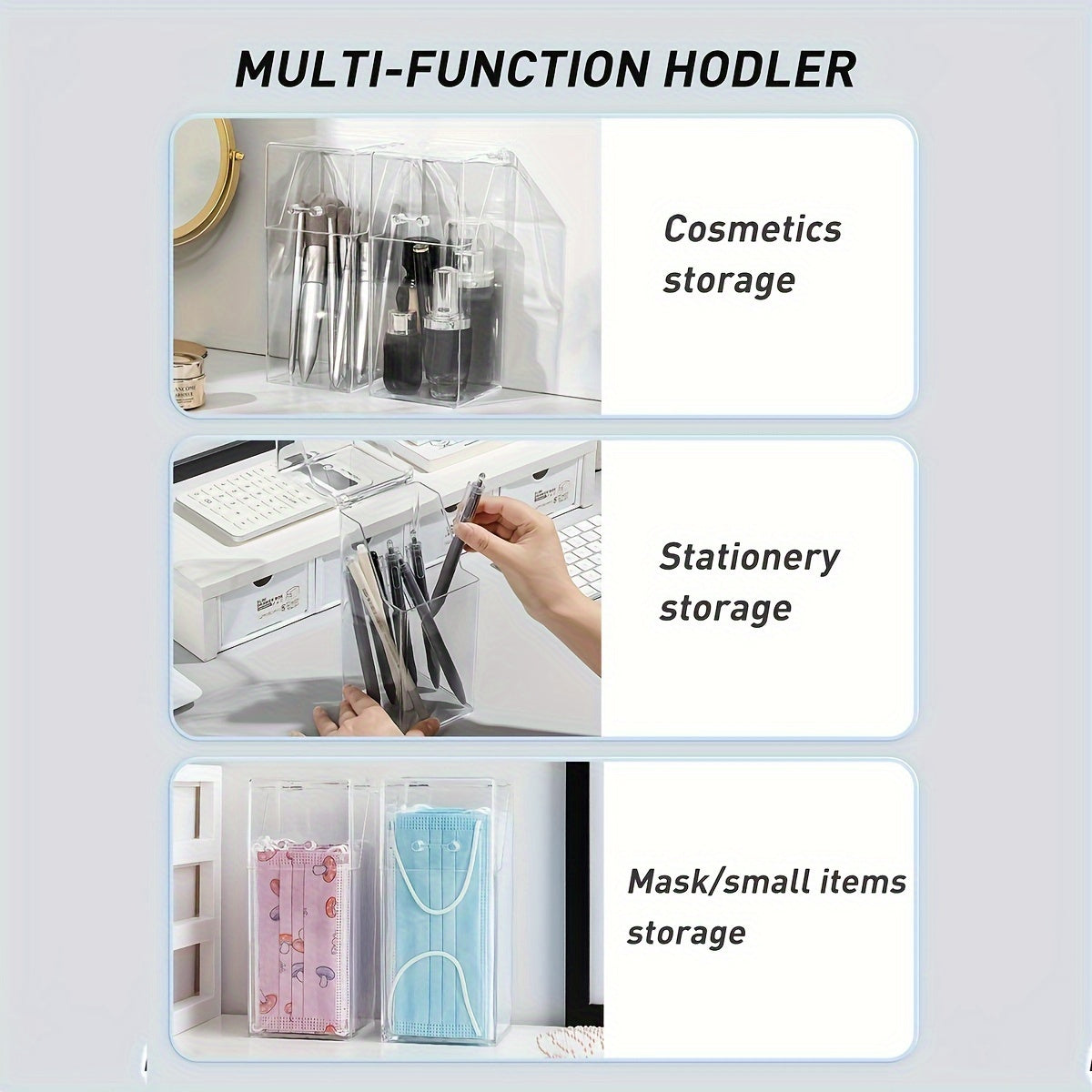Clear Acrylic Desk Organizer with Lid for Makeup Brushes and Pens