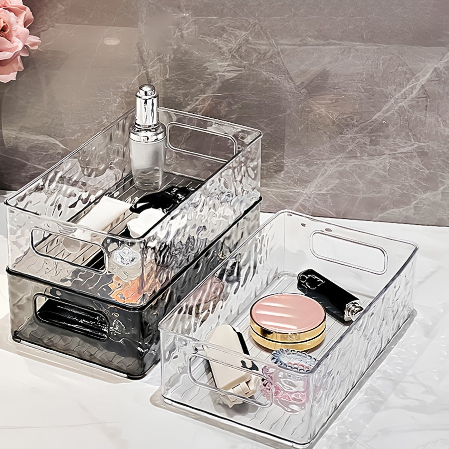 Clear Water Ripple Plastic Storage Basket for Makeup Skincare Snacks Bathroom Accessories