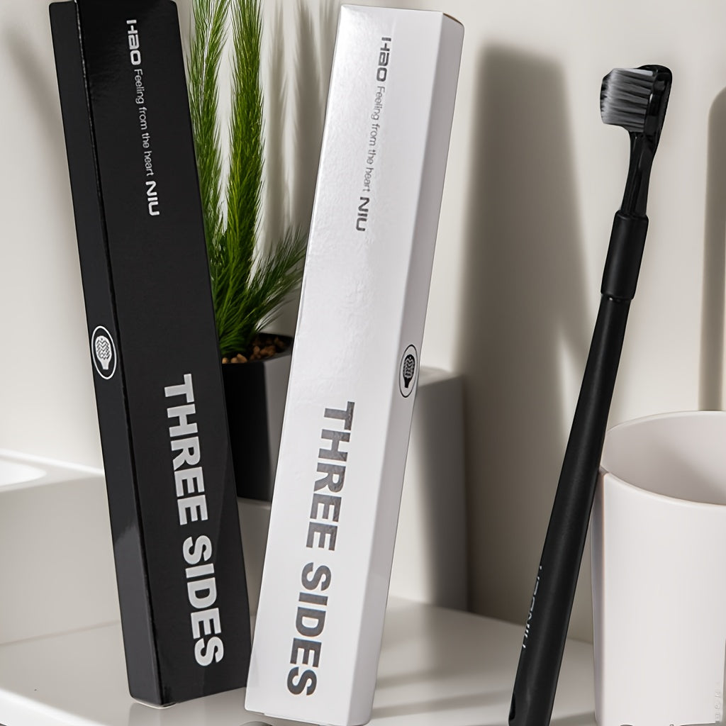 Unisex Adult Compact 3-Sided Toothbrush with Microfiber Bristles for Deep Cleaning