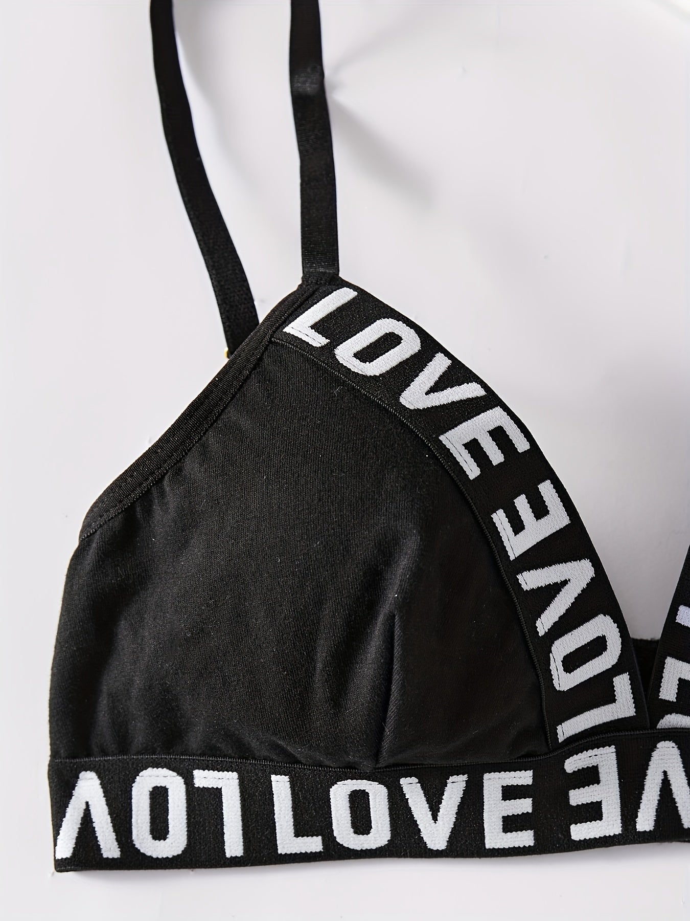 Women's Lingerie Set Printed Letter Bra and Panties with Soft Straps