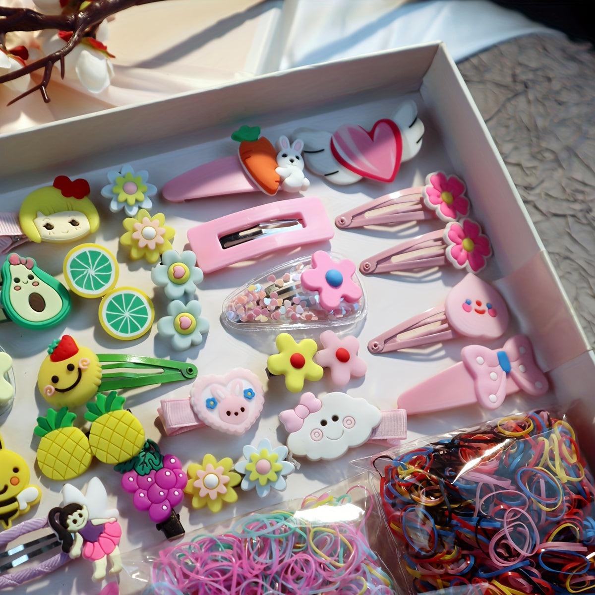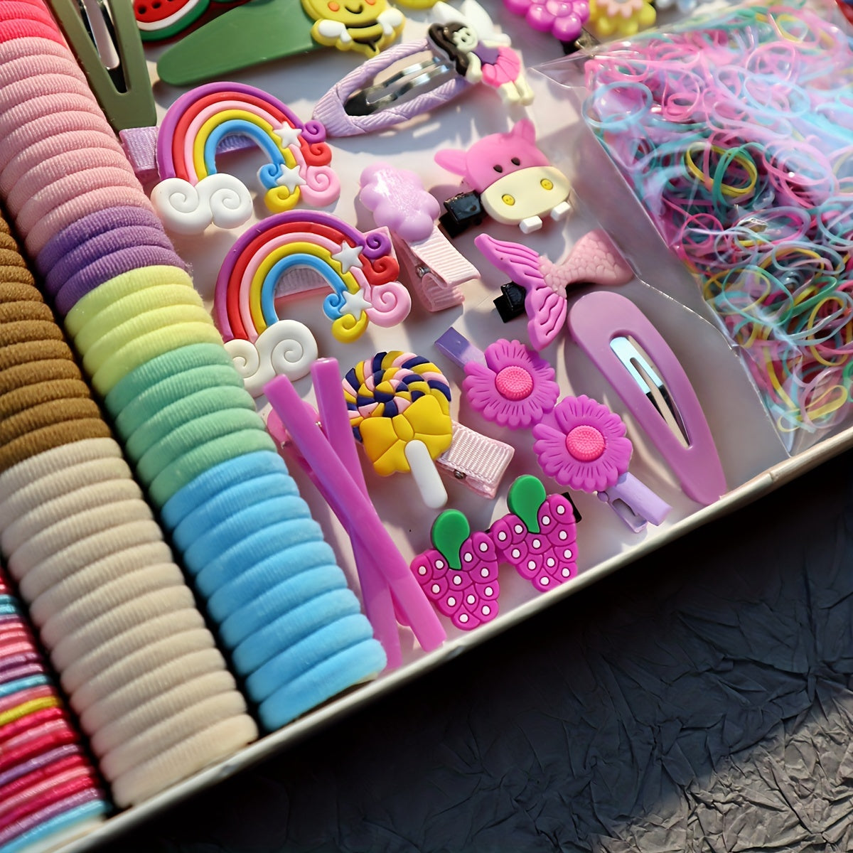 Women's Hair Accessory Set Includes Bowknot Clips Ties Loops for Daily and School Hairstyles