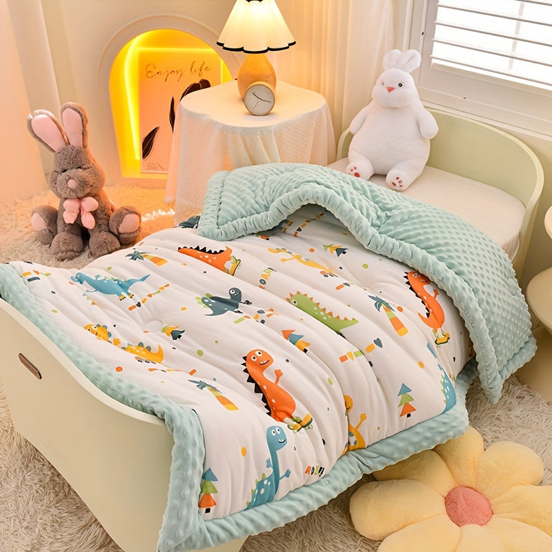 Kids Reversible Dinosaur Sleeping Bag Soft Velvet White with Colorful Patterns