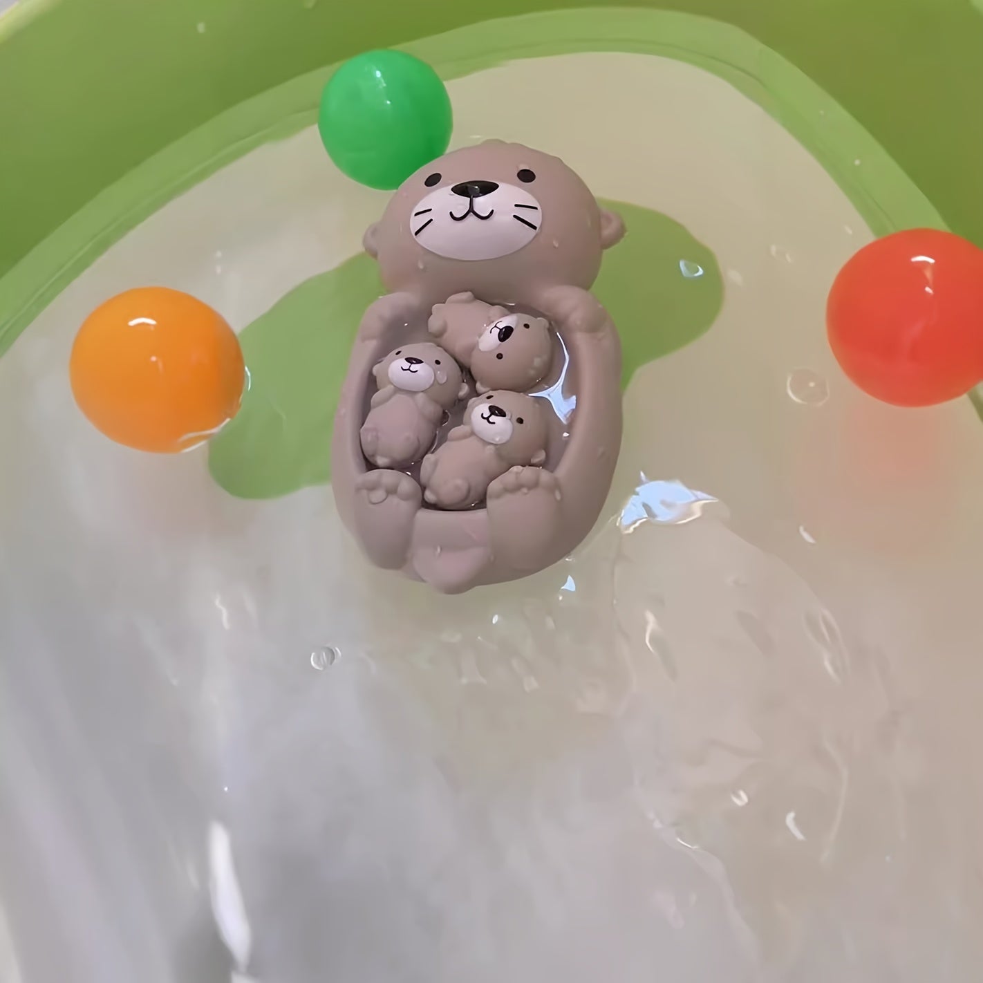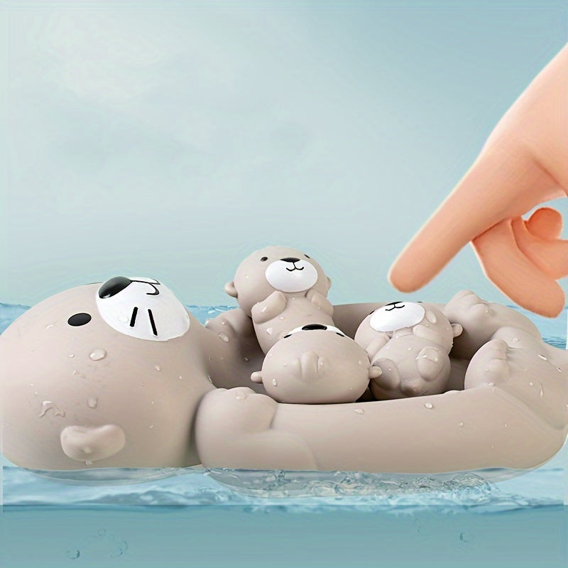 Kids Bath Toy Set with Floating Otter and Water Play Animals Gray