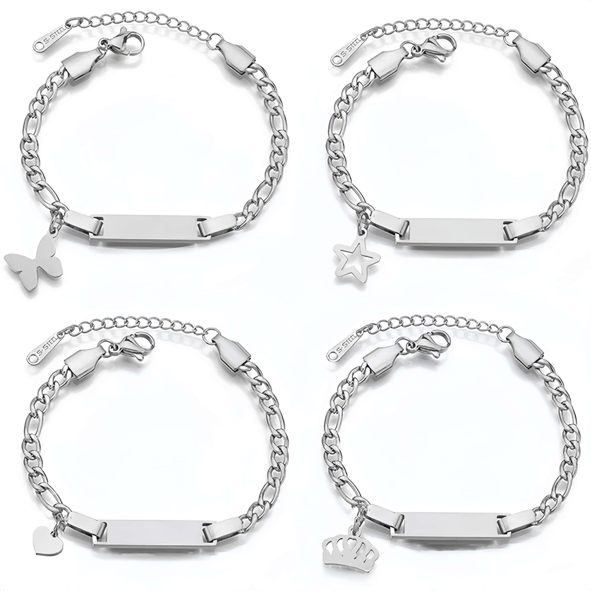 Charm Bracelet with Butterfly, Star, Crown, Heart Charms Custom Engraving for Birthdays Valentine Mother’s Day