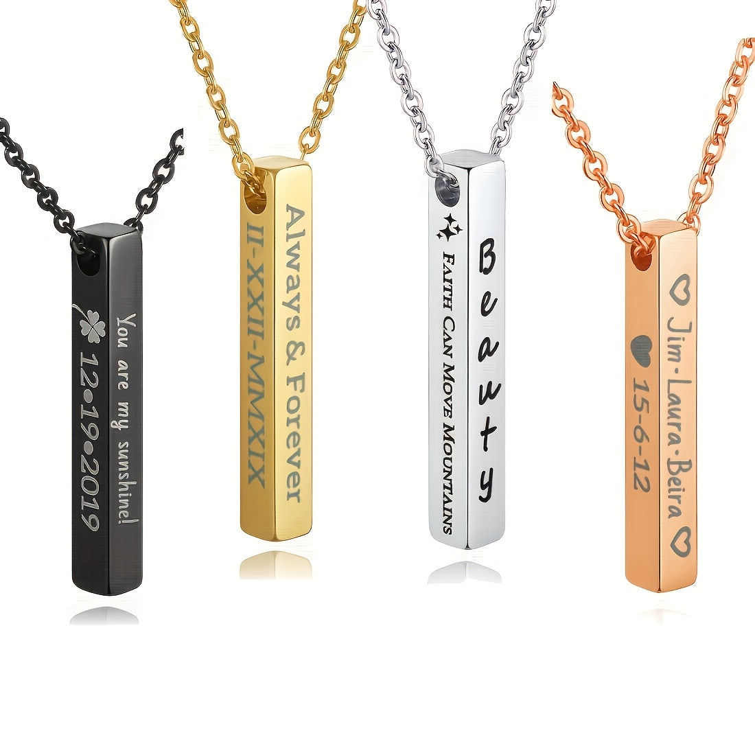 Engraved Name Necklace 3D Square Pendant Stainless Steel for Women in Silver Gold Rose Gold Black