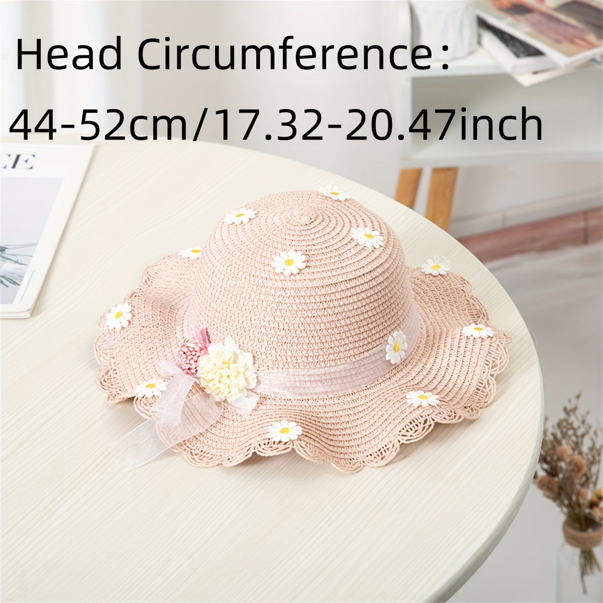 Teen Girls Straw Hat with Daisy Pattern and Matching Bag Summer Water-Resistant