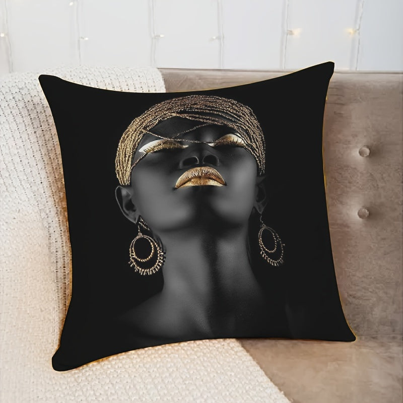 African American Woman Throw Pillow Cover Black and Gold 45 Inch Decorative Cushion
