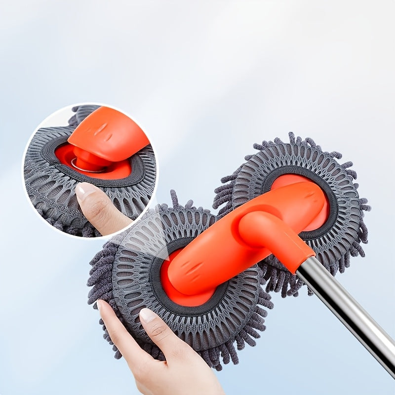 Dual Disk Car Wash Mop with Soft Brushes Stainless Steel Handle for Dusting and Detailing