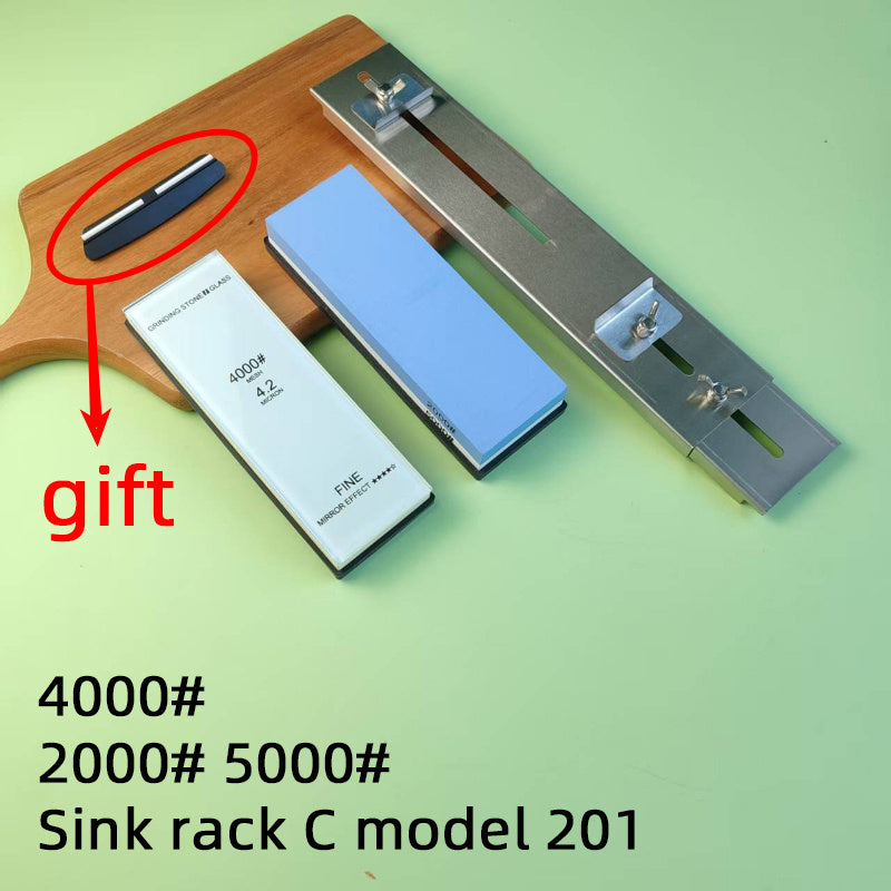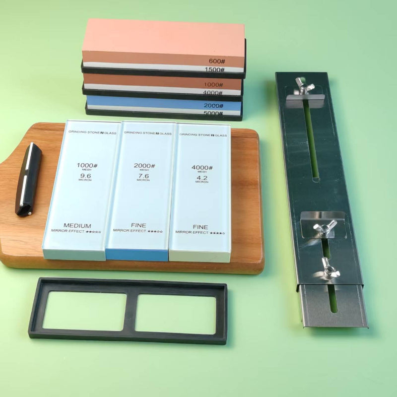Dual-sided glass oilstone sharpener with adjustable length stainless steel groove corner guide rail for knives