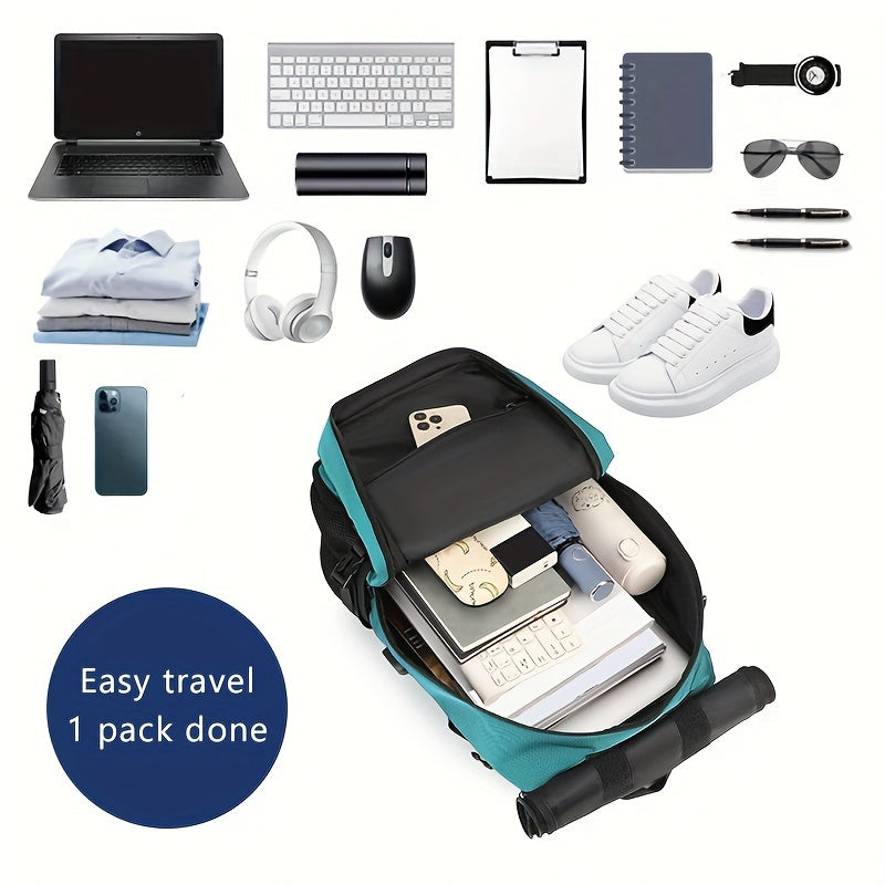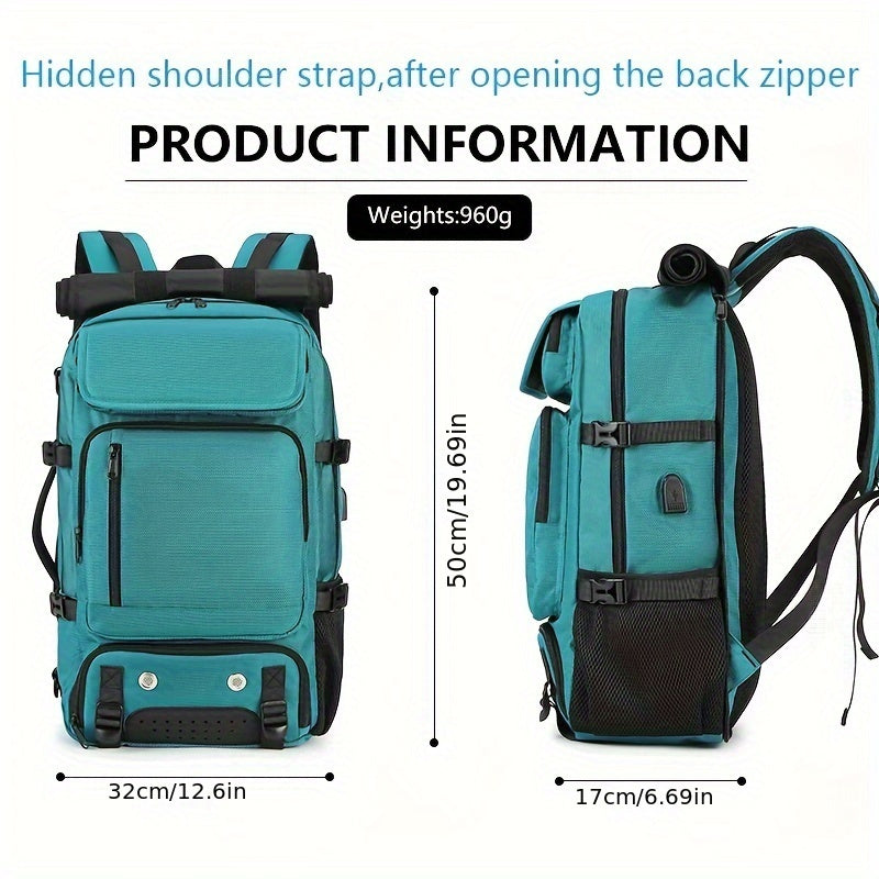 Black Waterproof Hiking Backpack with Shoe Compartment and Adjustable Straps