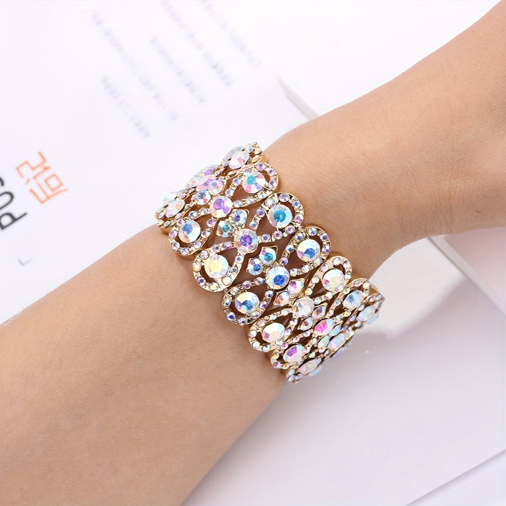 Elegant Rhinestone Pave Copper Stretch Bracelet for Women and Girls