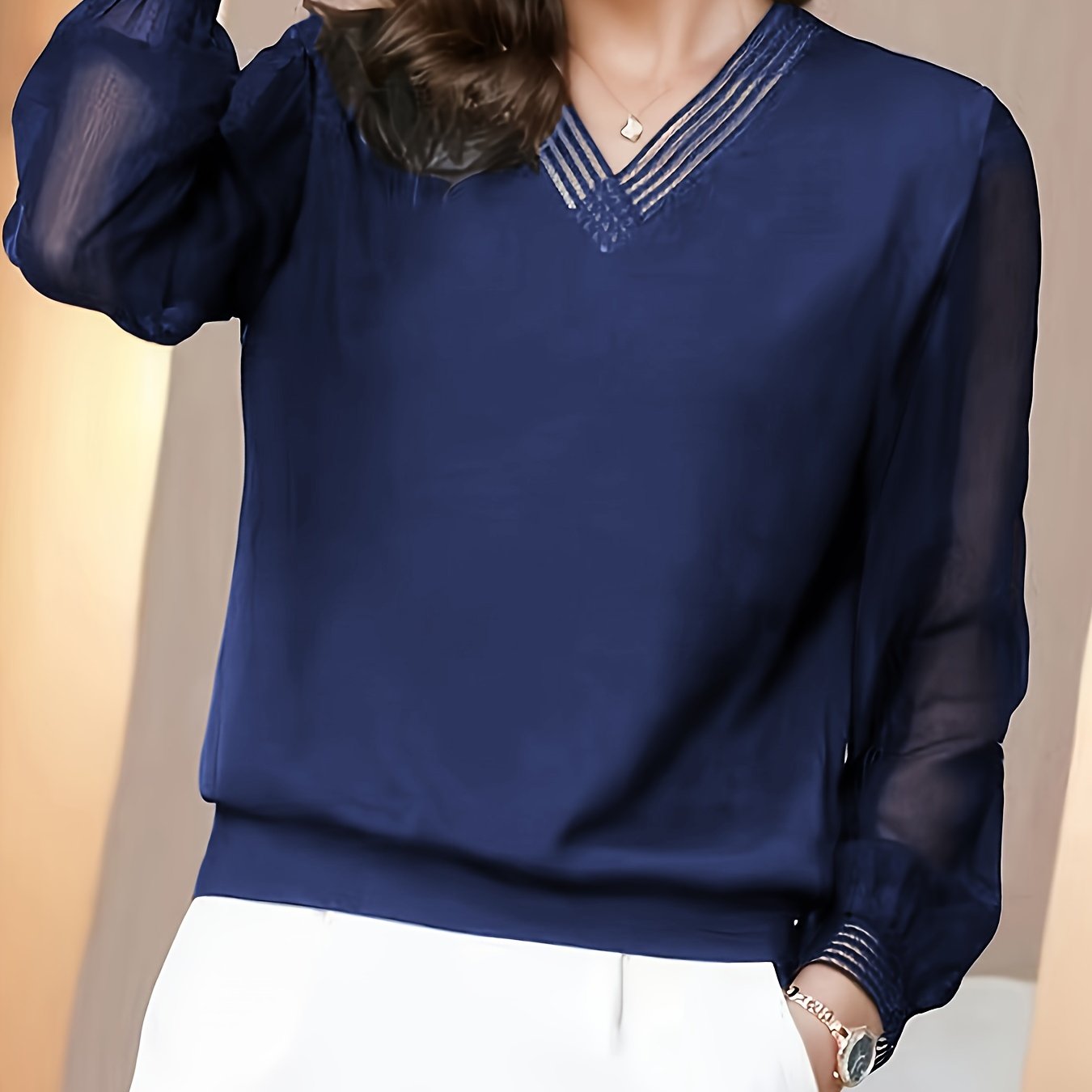 Women's Black Lace Chiffon V-Neck Blouse Spring Fall Layering