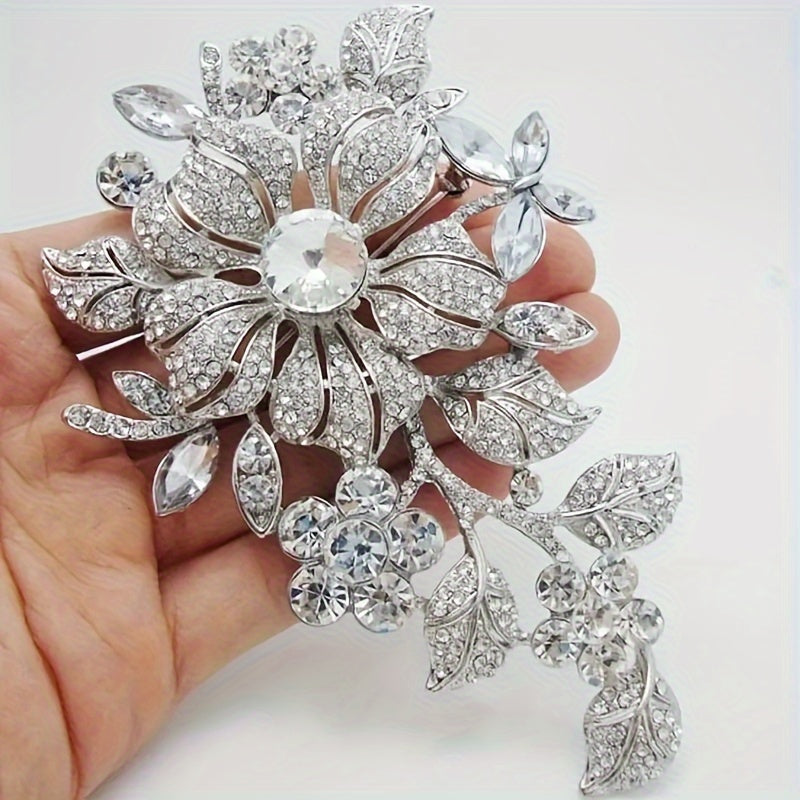 Women's Floral Brooch Pin Alloy Silvery-Tone Rhinestone Jewelry