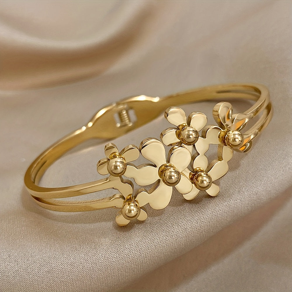 Gold-Plated Stainless Steel Men's Bracelet with Flower Design