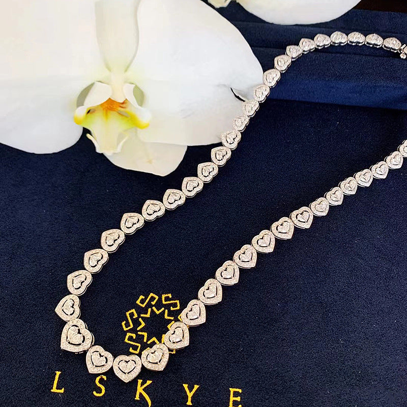 Heart-Shaped Synthetic Gemstone Necklace Sterling Silver No Plating for Women