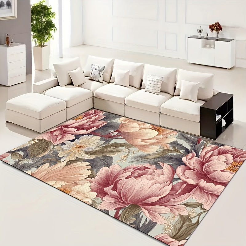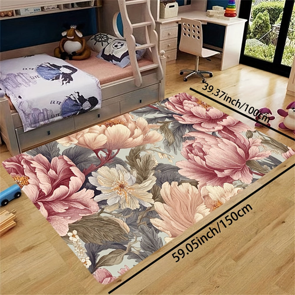 Plush Floral Area Rug 8mm Thick Soft Machine Washable Polyester for Living Room Bedroom Kitchen Bathroom