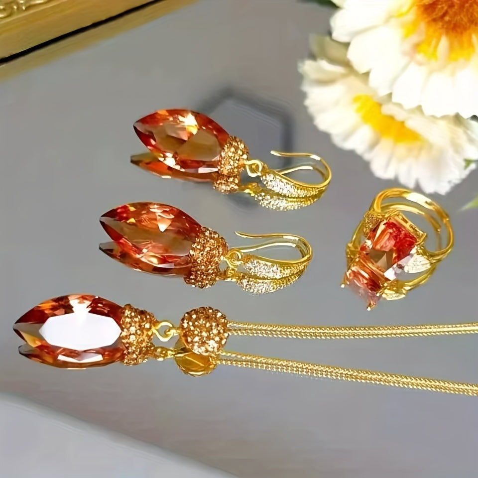 Elegant Sultanite Jewelry Set with Color-Changing Stone, Adjustable Marquise Ring Necklace Earrings