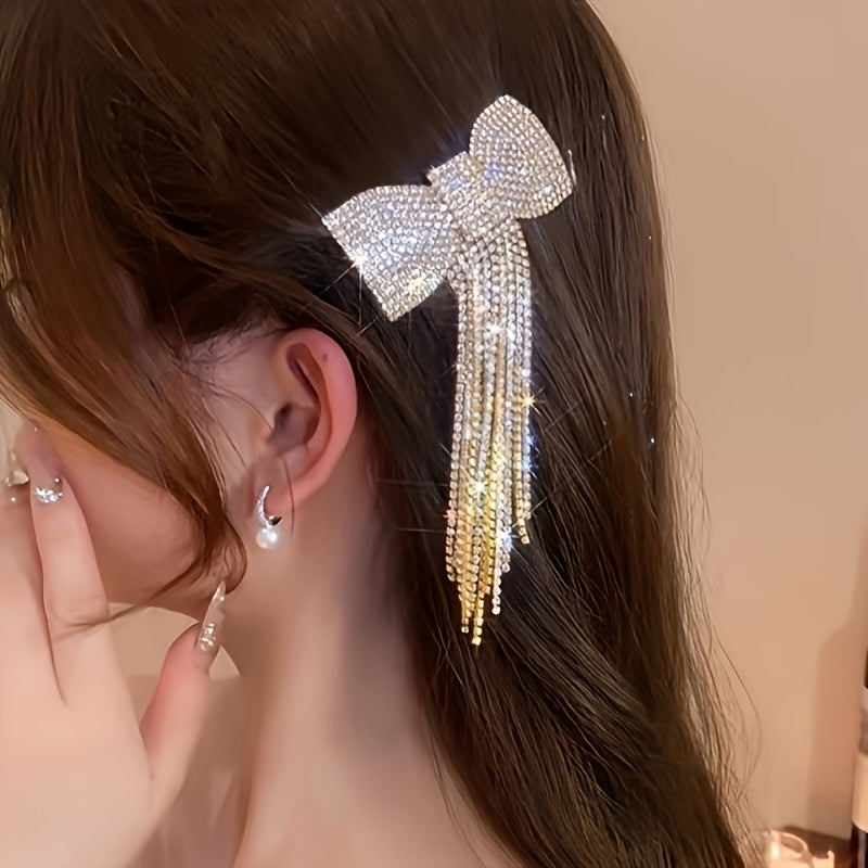 Chic Hair Accessory with Water Drill Tassels and Butterfly Bows for Elegant Hairstyles