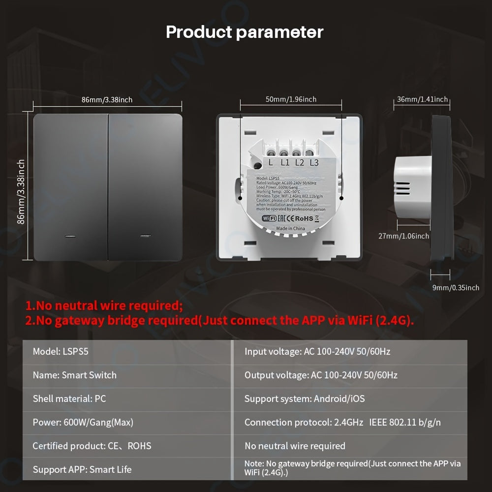 Wi-Fi Smart Switch Flush Mount App Voice Control for Home Automation