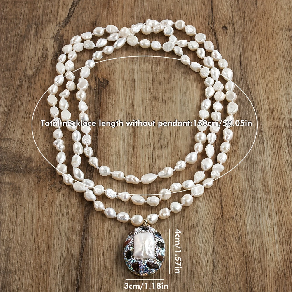 Natural Biwa Pearl Necklace 150cm Freshwater Pendant Bohemian Jewelry for Daily Wear