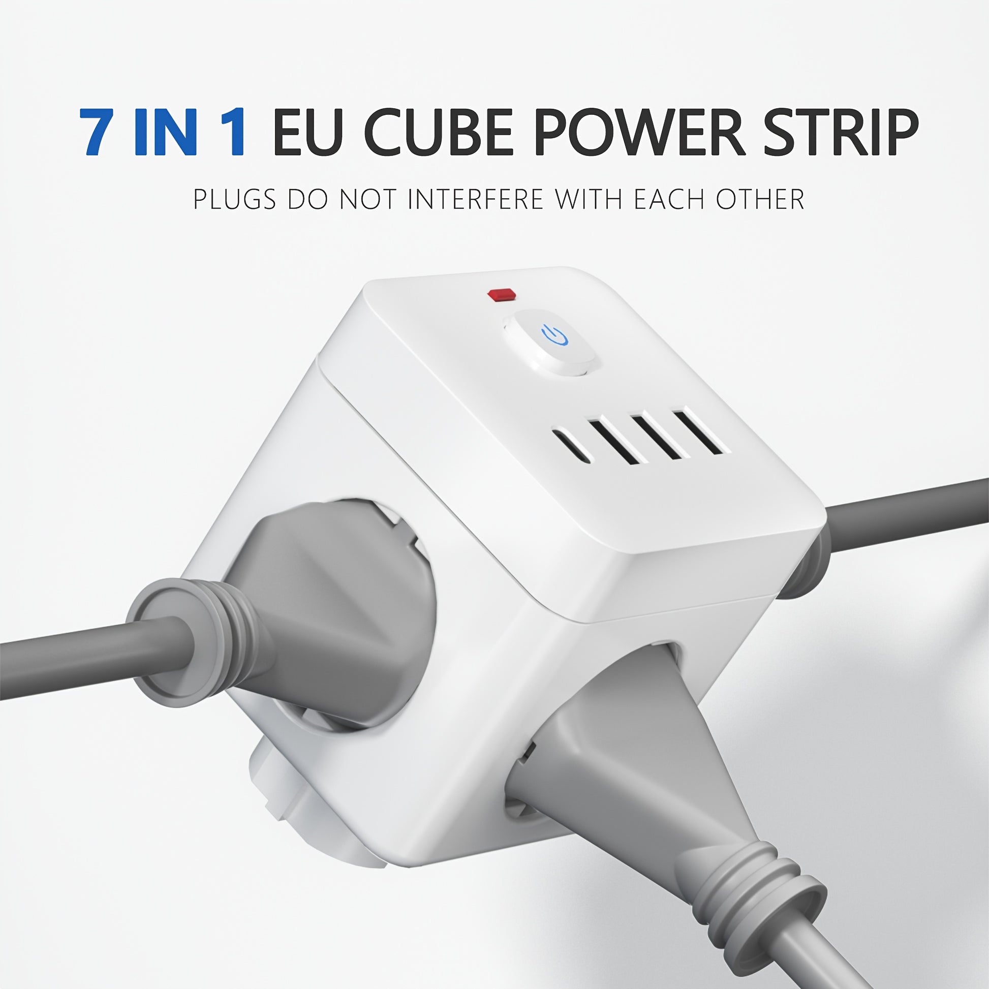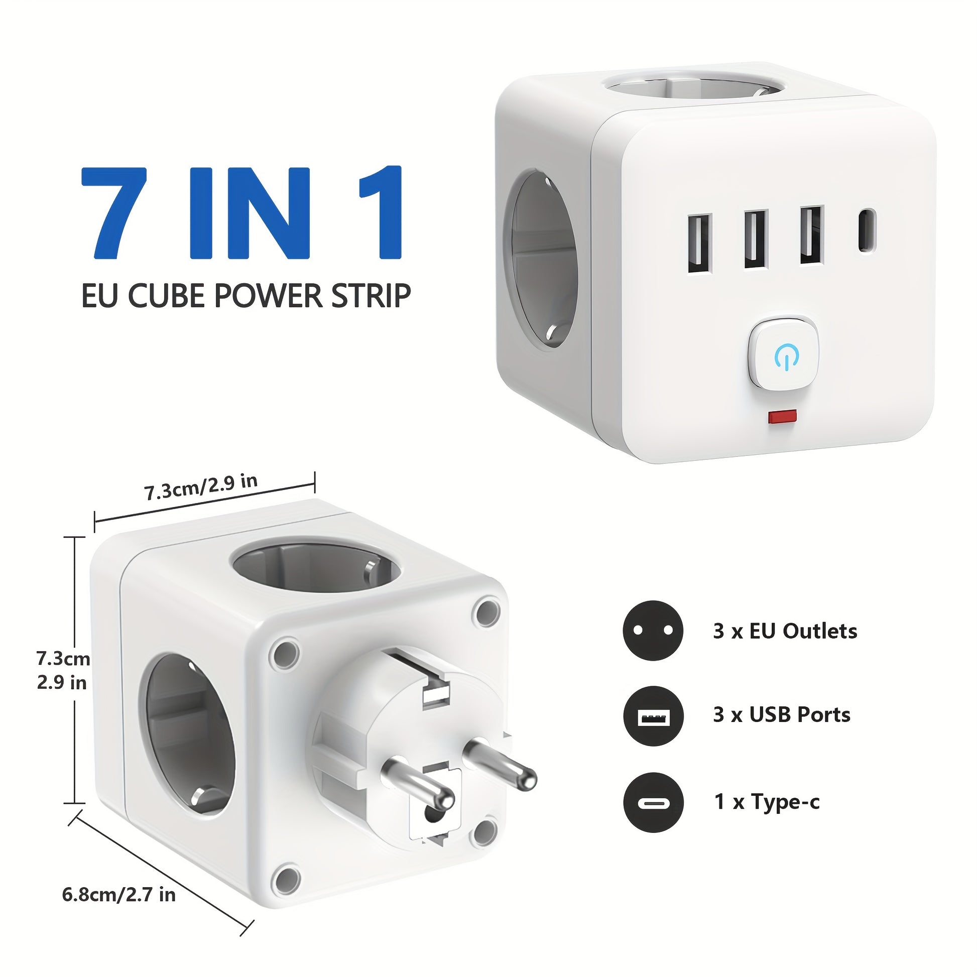 EU Power Strip with 7-in-1 Surge Protector 3 AC Outlets 3 USB Type-C for Home Office Travel