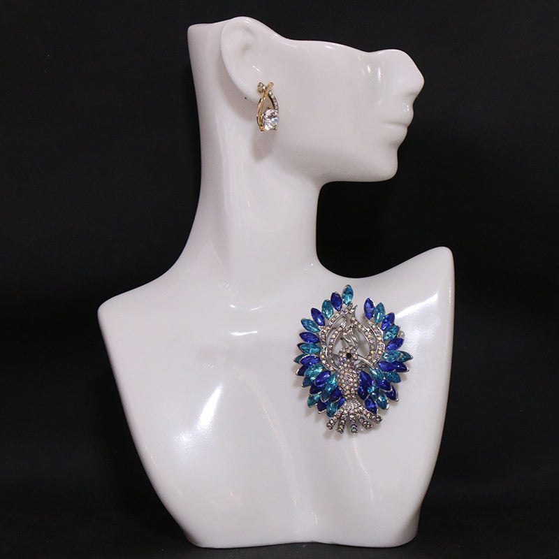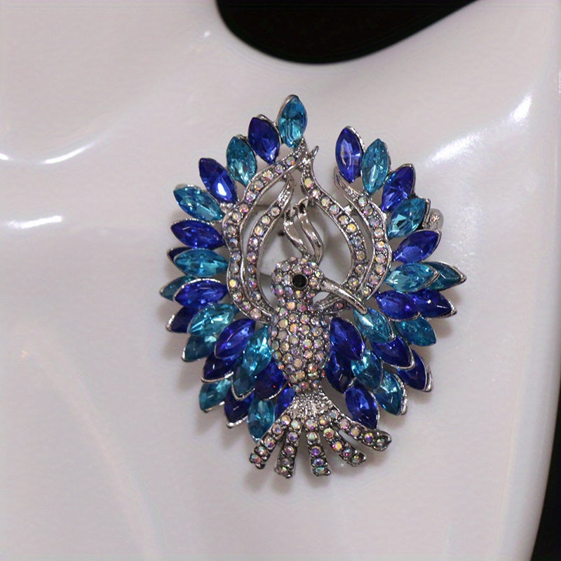 Peacock Brooch Pin with Blue Rhinestones Irregular Shape Elegant Jewelry Accessory
