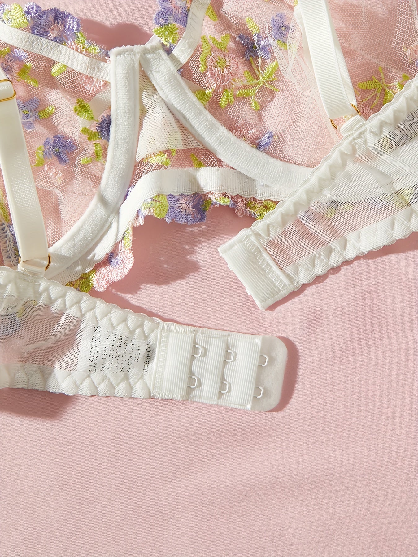 Women's Floral Mesh Lingerie Set Bra and Thong Sexy Underwear