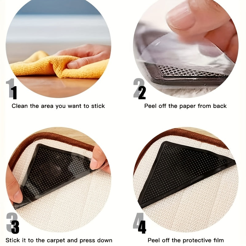 Four-Piece Non-Slip Carpet Mats with Reusable Clips for Hardwood and Tile Floors