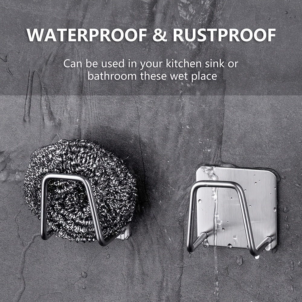Stainless Steel Kitchen Hooks Set 1/2/4 Self-Adhesive for Sponges and Accessories