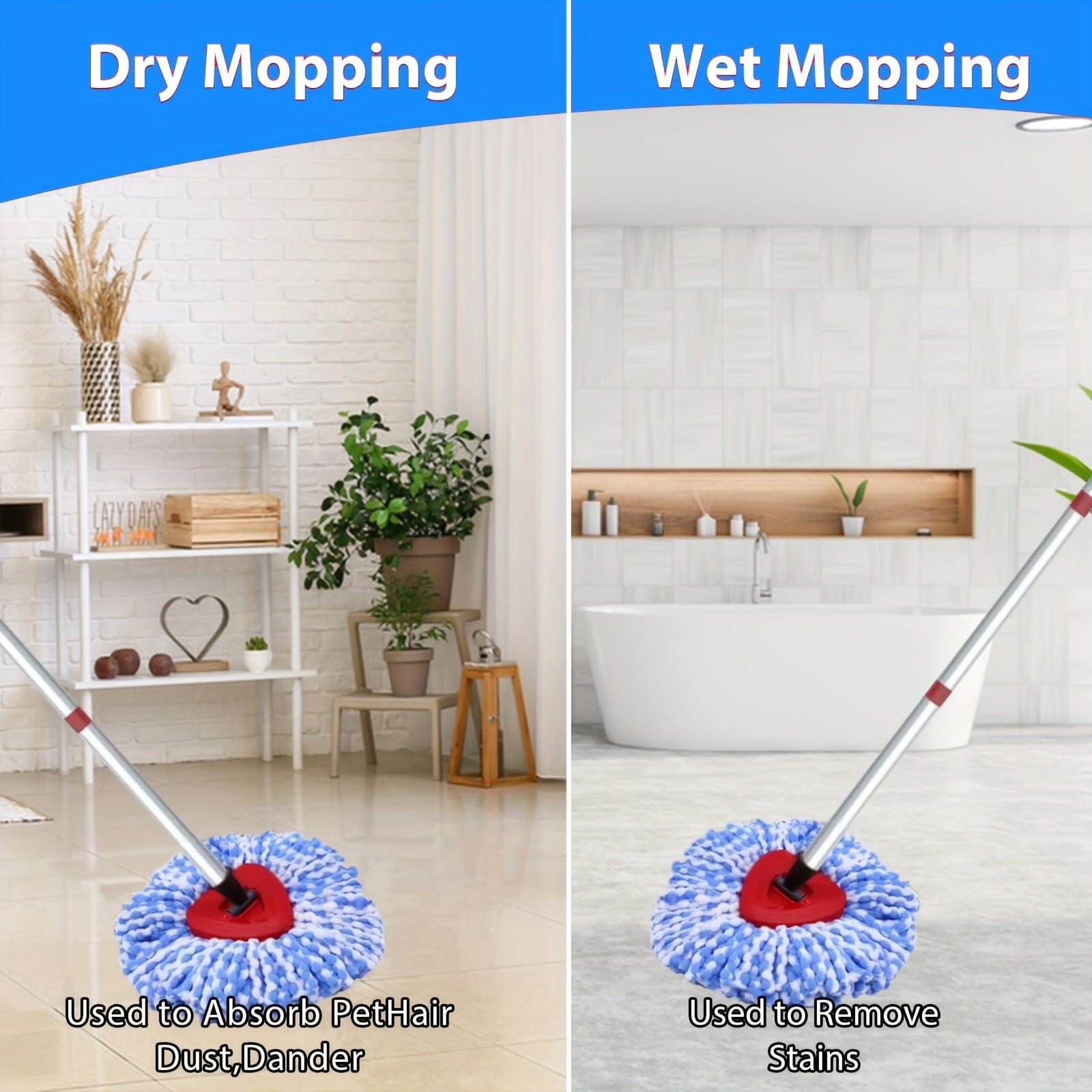 Microfiber Spin Mop Replacement Heads and Handle Set for 2 Tank System