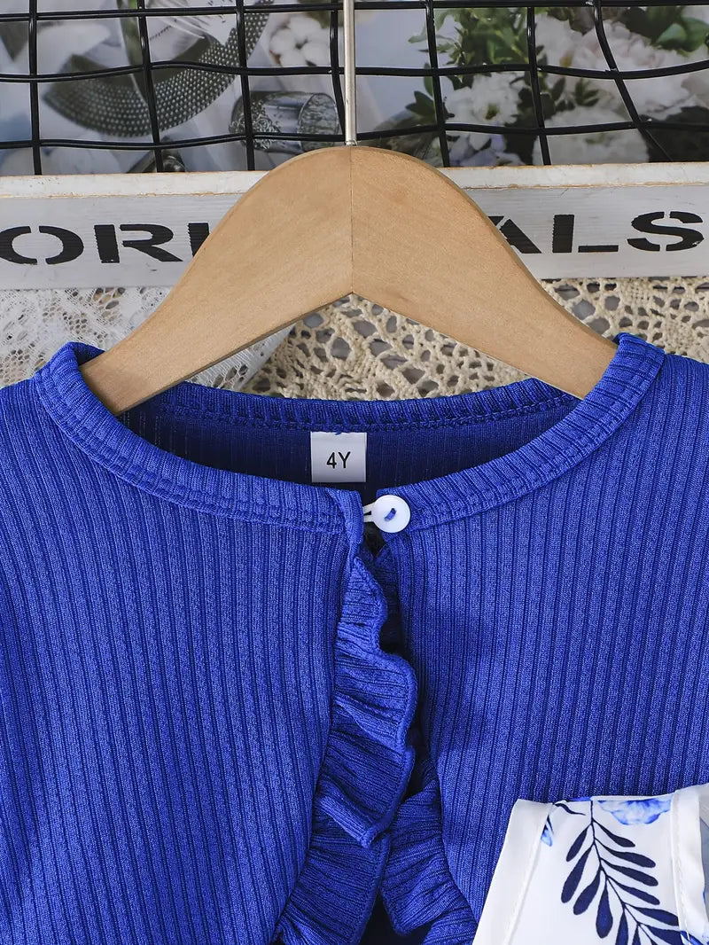 Girls' 2-Piece Floral Sundress and Ruffle Cardigan Outfit for Spring Fall Casual