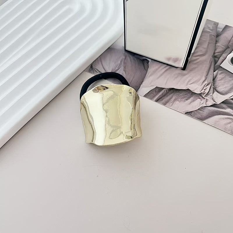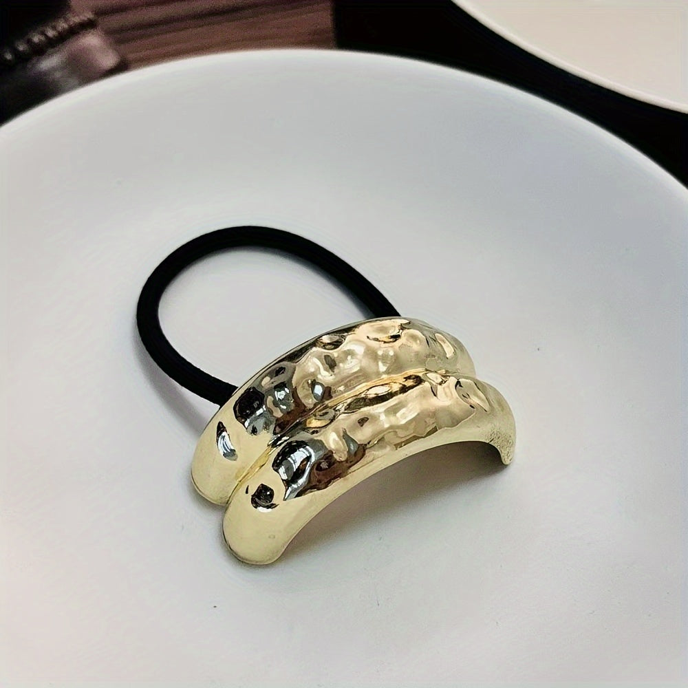 Set of 3 Gold Alloy Hair Ties for Women and Girls Minimalist Ponytail Holders