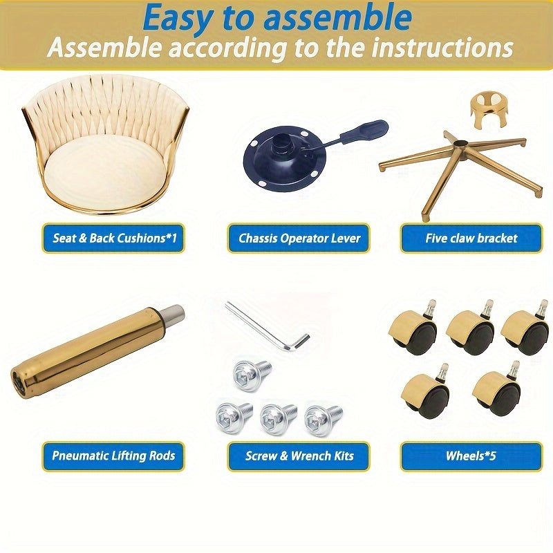 Golden Velvet Swivel Vanity Chair with Woven Backrest Adjustable Height 360° Rotation Cream Upholstery