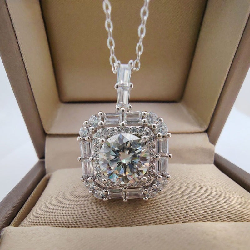 5 Carat Moissanite Pendant Necklace in Sterling Silver Round Cut Bridal Jewelry