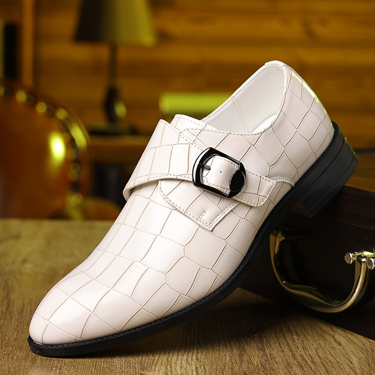 Men's Gray Crocodile Pattern Faux Loafers with Pointed Toe and Buckle, All-Season Casual Shoes