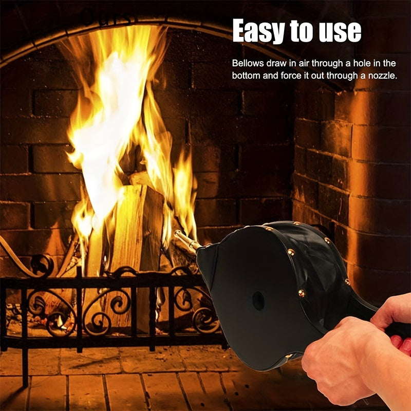 Handheld Fireplace Bellows with Golden Nozzle, Durable Wood-Burning Blower, Indoor Outdoor Heating Tool