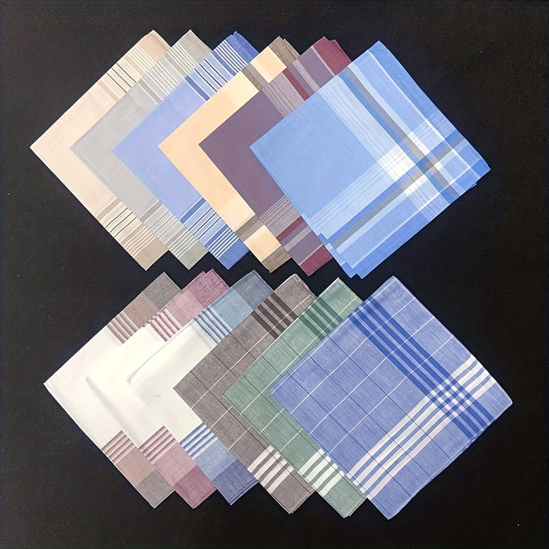 Set of 12 Men's and Women's Cotton Handkerchiefs in Assorted Colors and Styles