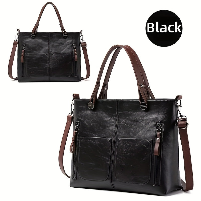 Black PU Shoulder Bag with Detachable Adjustable Strap for Business and Daily Use