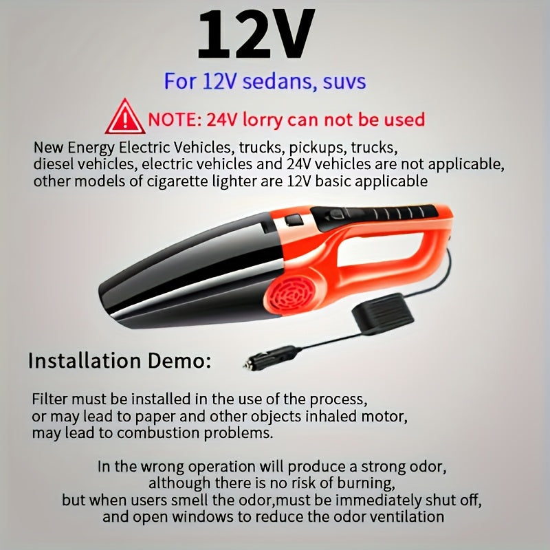 High-Power Car Vacuum Cleaner Wet Dry Mini Vehicle ABS Resin 0.4L Dust Cup
