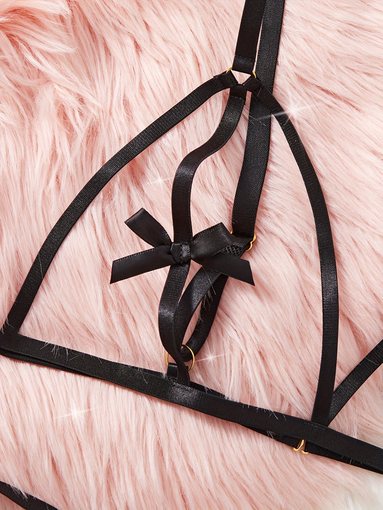 Women’s Lingerie Set Polyester Knit Adjustable Bra and Thong Solid Color High-Waisted Panty
