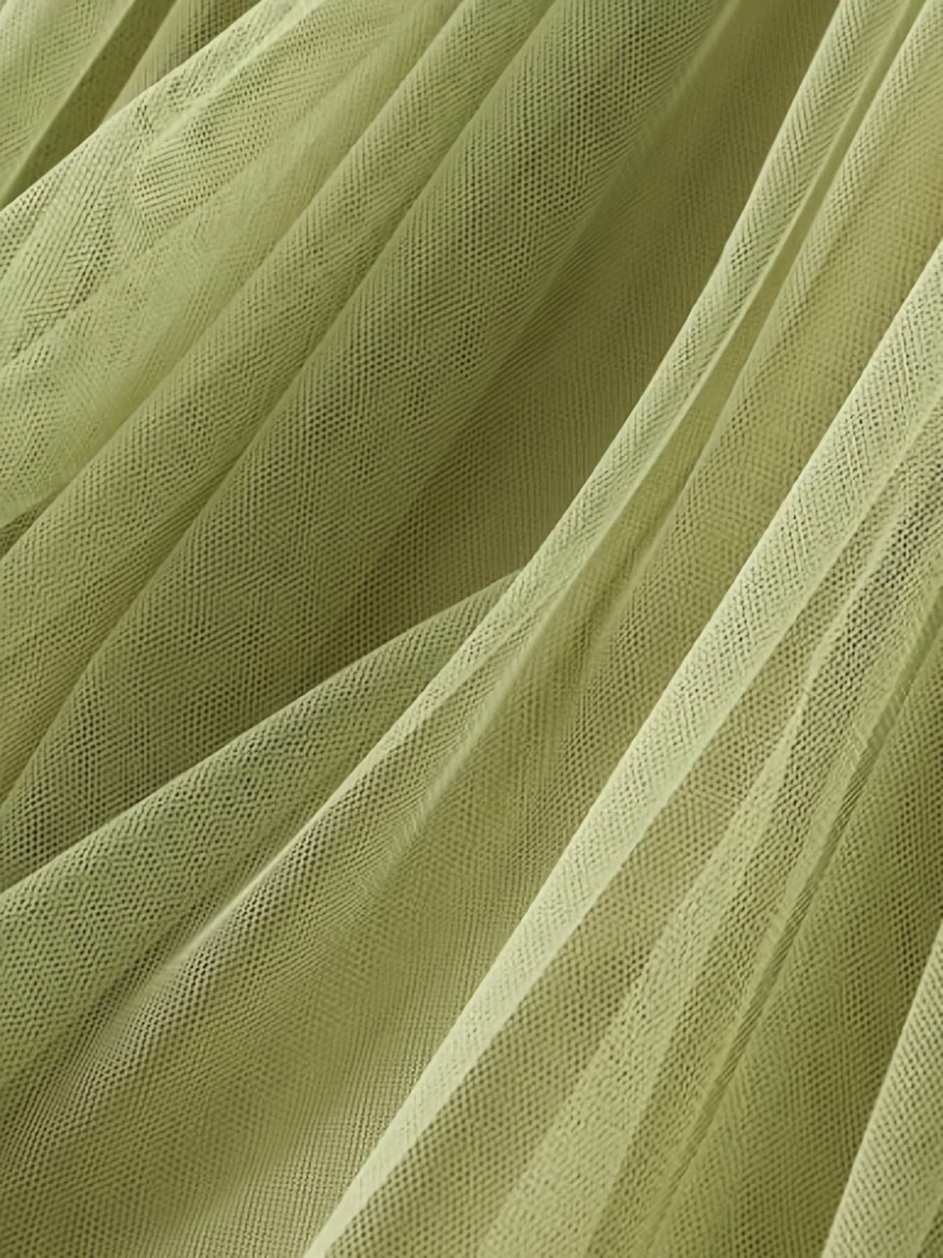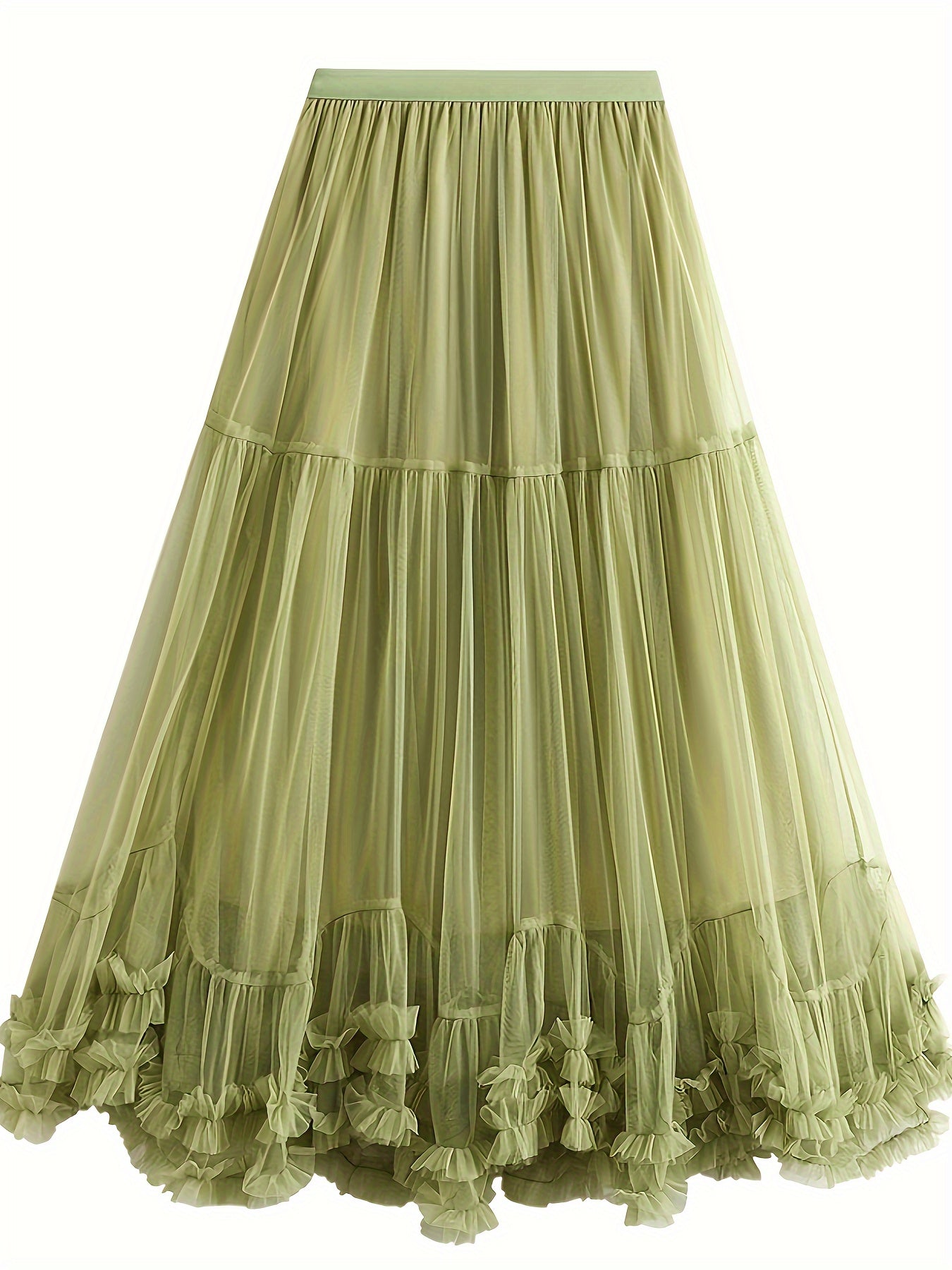 High-Waist Slimming Mesh Skirt with Ruffles Long A-Line Elegant Polyester