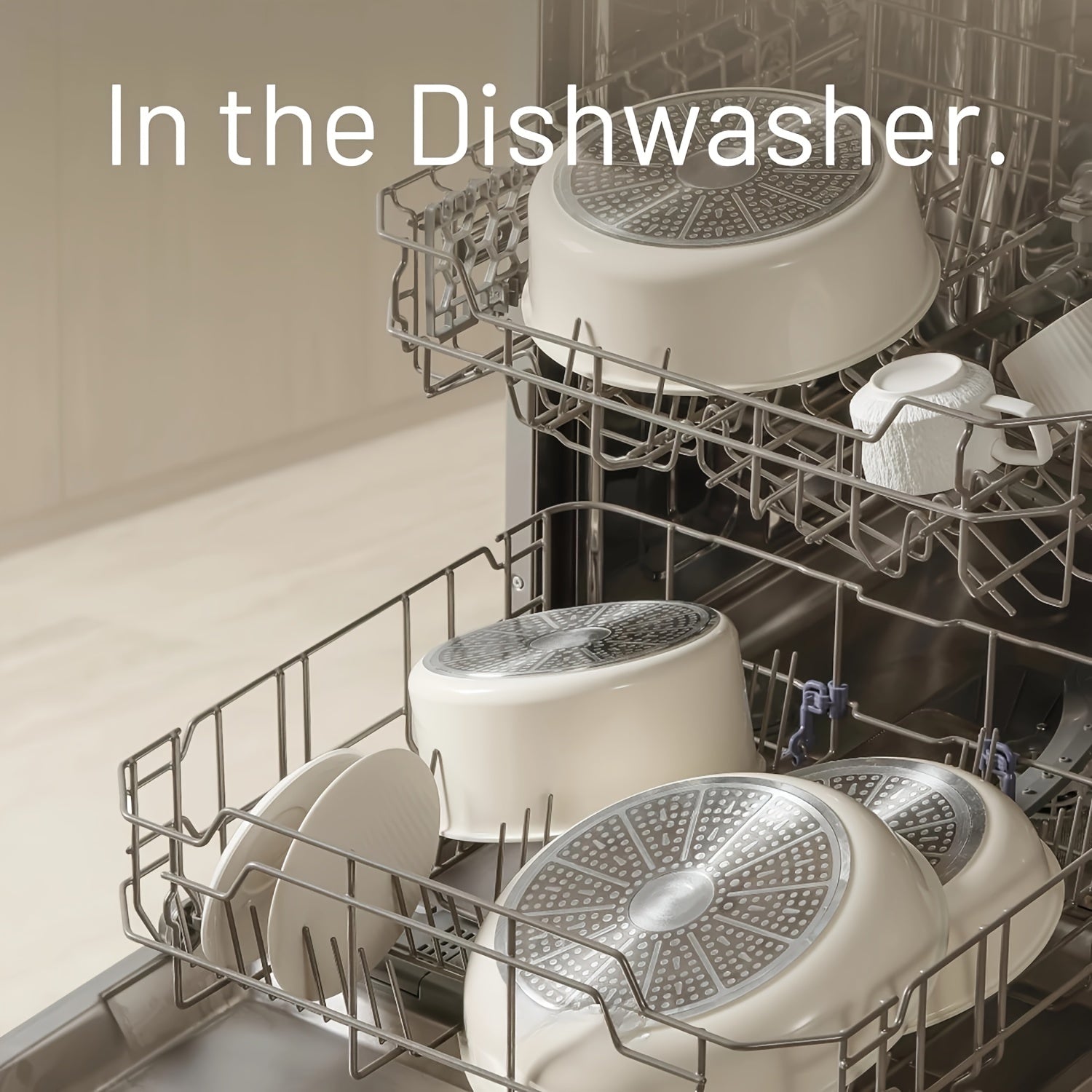 15-Piece Nonstick Cookware Set in Milk White with Detachable Handles, Dishwasher Safe